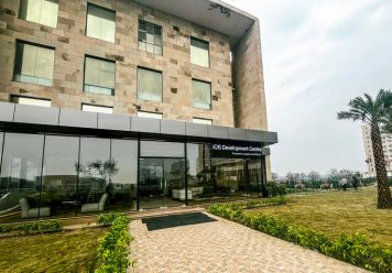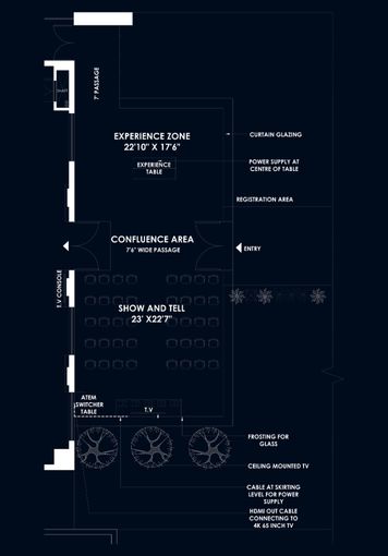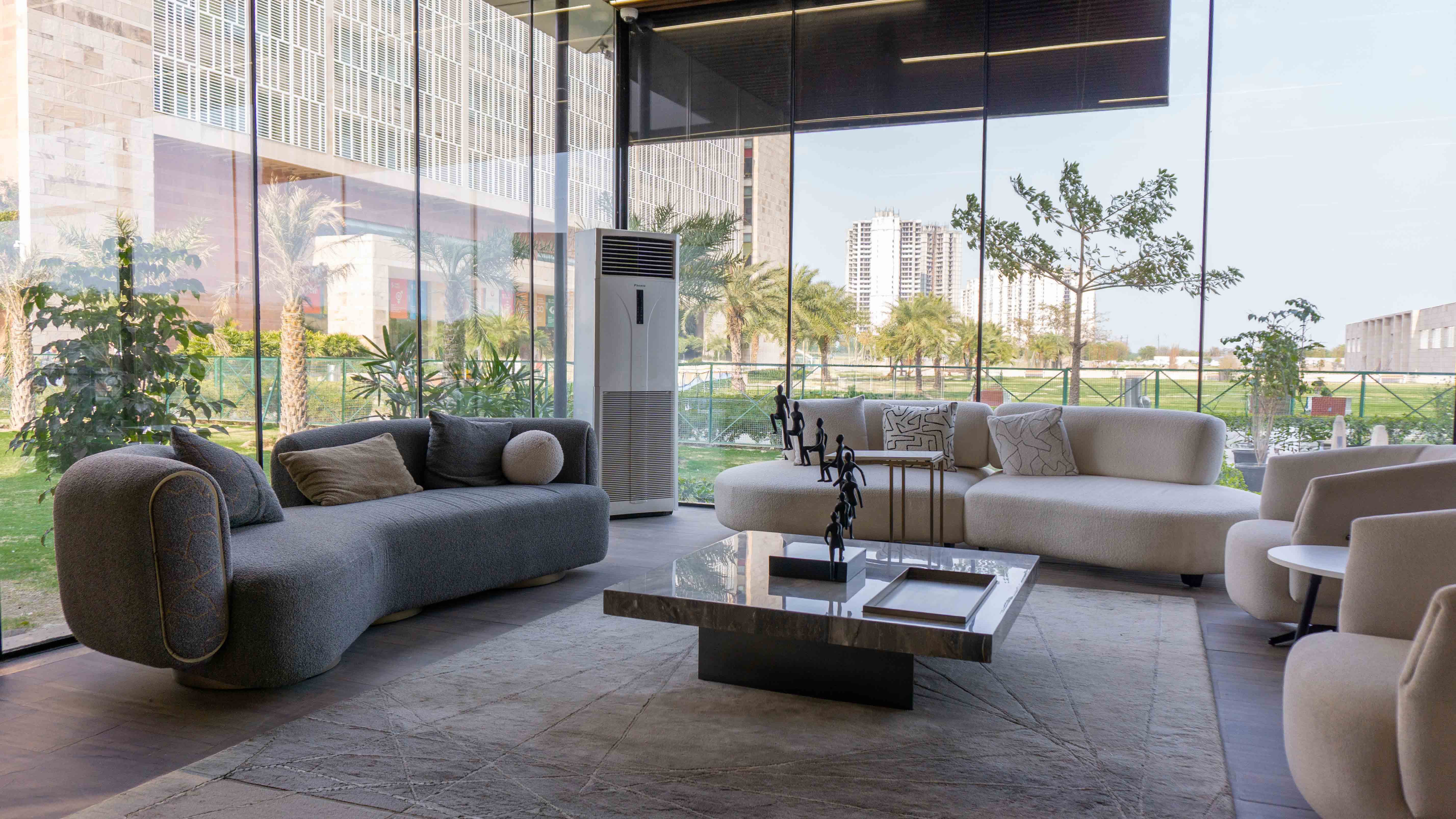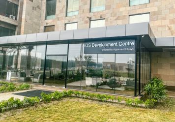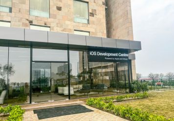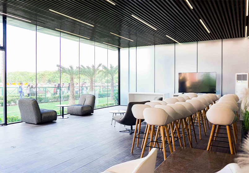 This 1300 sq. ft. construction project in Greater Noida was envisioned as a confluence area within the Apple Lab development zone, a space designed to bring people together through openness, innovation and modern design.