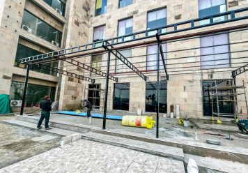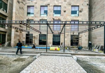 The completed confluence zone is a sleek, modern glass structure that intentionally juxtaposes the existing Dholpur sandstone façade of the college. A carefully planned foundation was constructed while keeping all current services in mind, ensuring seamless integration with the existing infrastructure