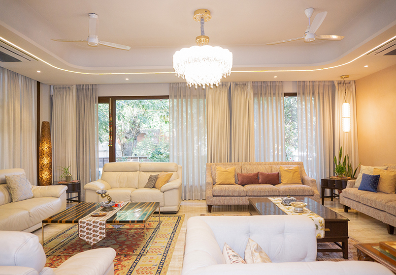 Since the home sits on a corner plot along a main road, DG glass was installed to improve insulation, reduce outside noise and allow proper ventilation. The new false ceiling and upgraded VRV air-conditioning system significantly improved lighting quality and cooling performance across the house.