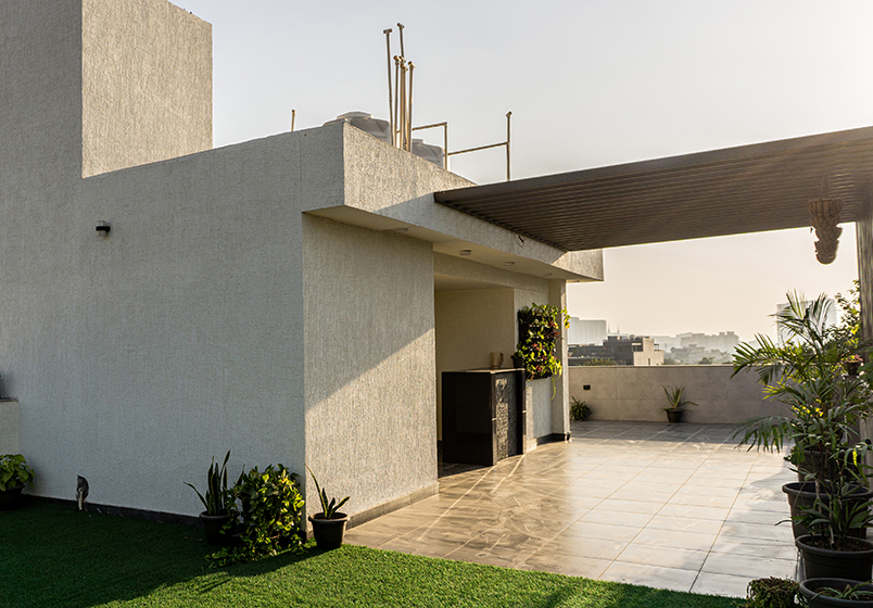 We handled the complete construction, architecture, and interior design of this project on a north-facing 200 sq. yard plot. The ground floor included a lift lobby, four servant rooms, and ample open space to accommodate up to eight vehicles (2 for each floor).