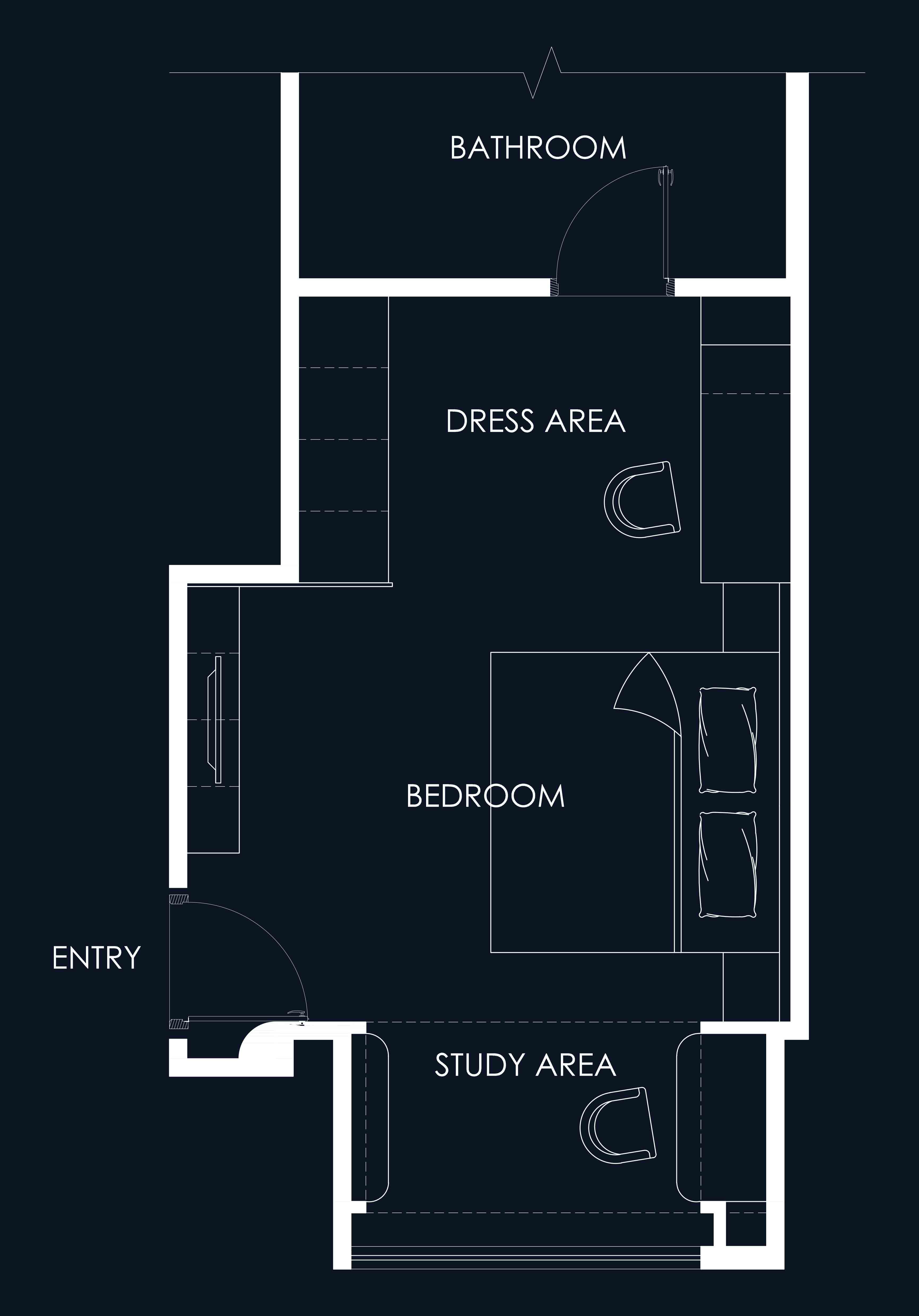 Designed for a young entrepreneur girl, the brief focused on moving away from loud colours toward a serene, calming palette. The client envisioned a larger-feeling bedroom with a deck-style balcony extension, along with a dedicated makeup area, study space and a functional wardrobe, all without cluttering the room.