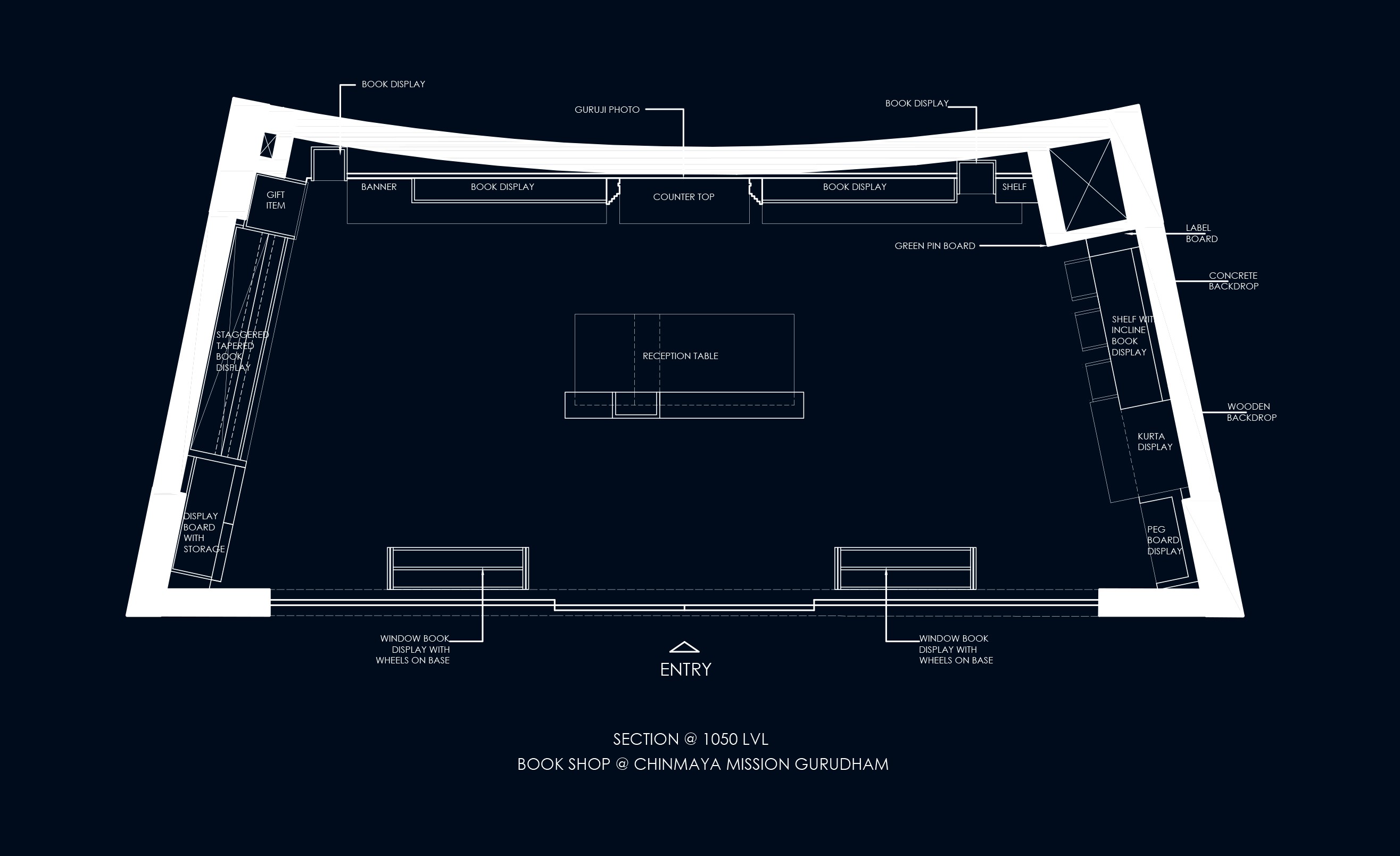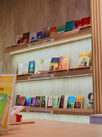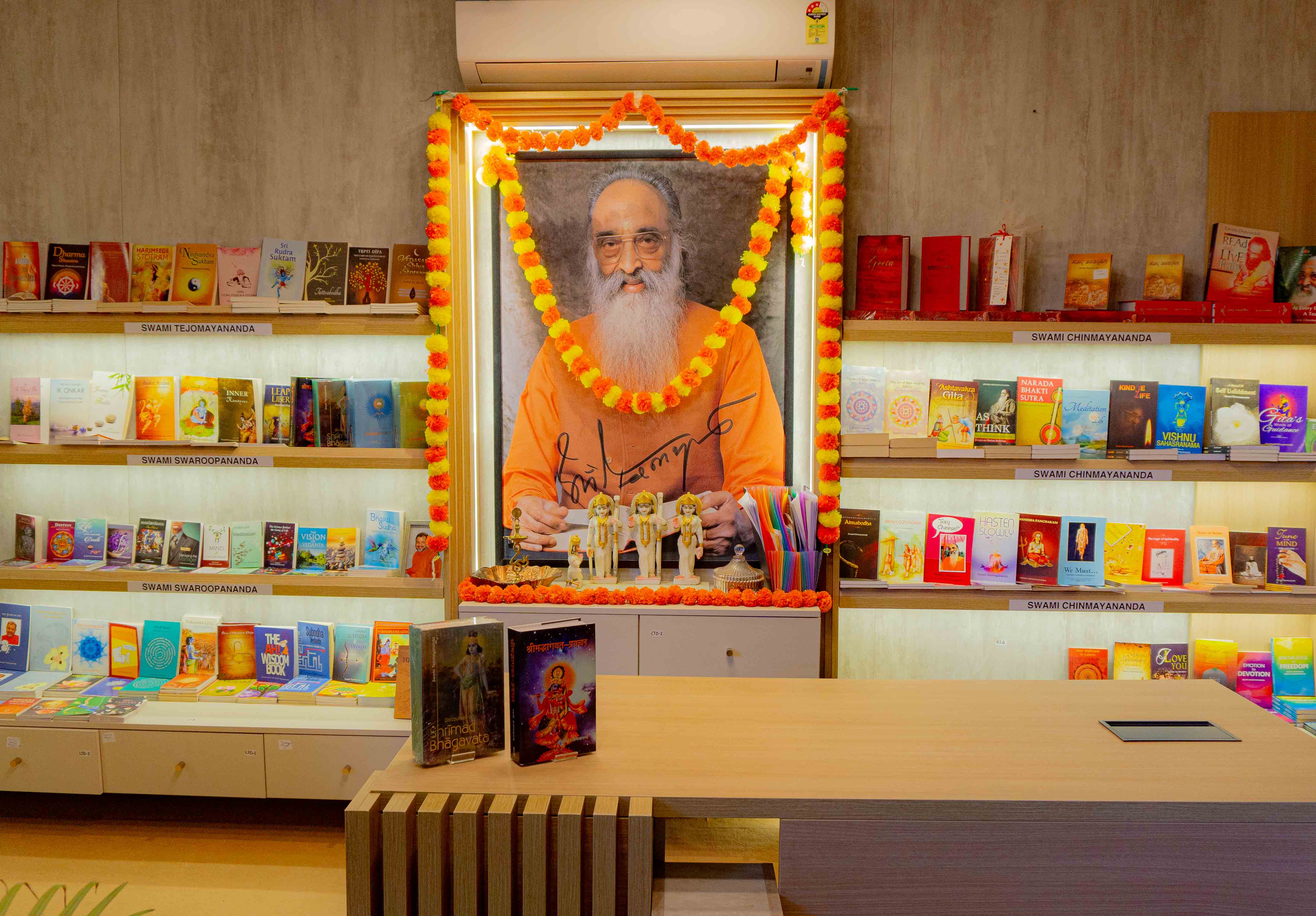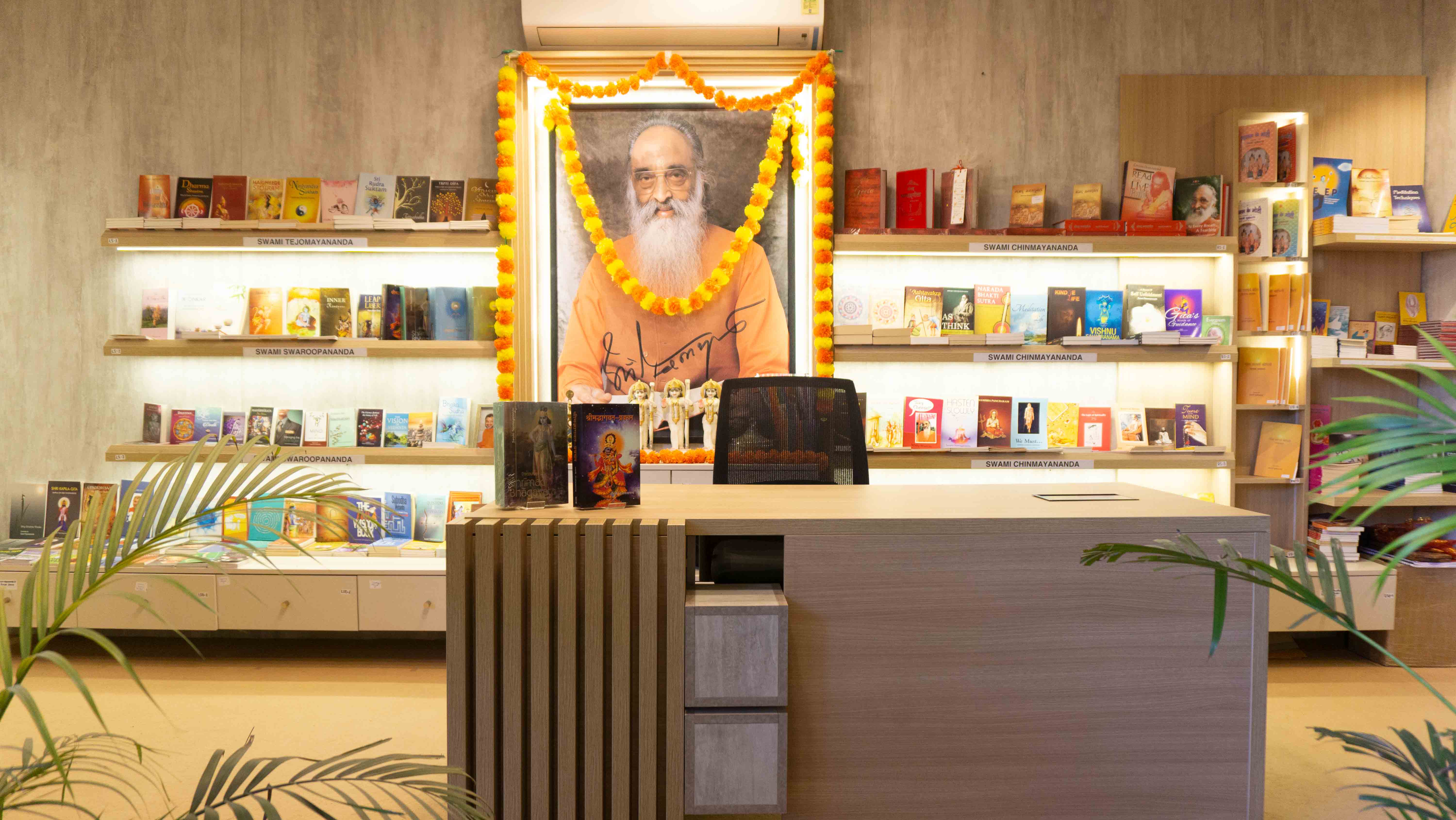 The client wanted a stylish, warm, and premium bookstore with bold contrasts, smart storage solutions, and a grand reception. The space was to be thoughtfully designed around a central portrait of Swami Chinmayananda Saraswati, creating a harmonious blend of functionality and cultural depth