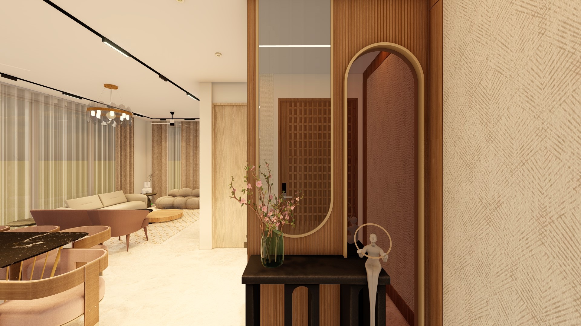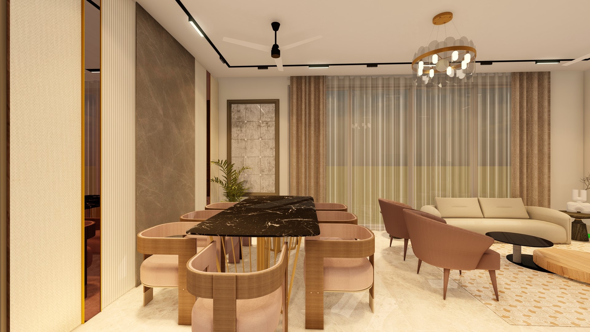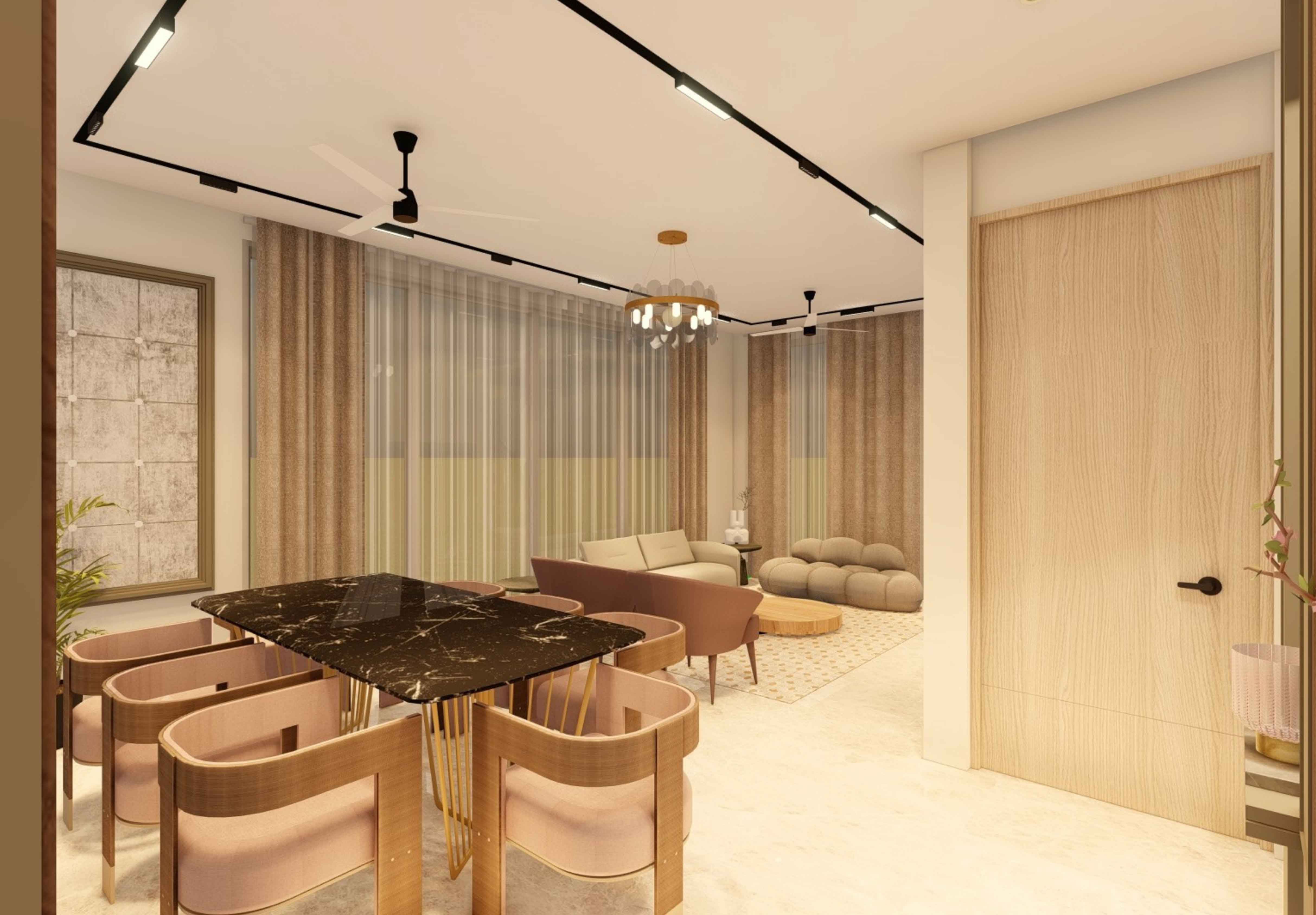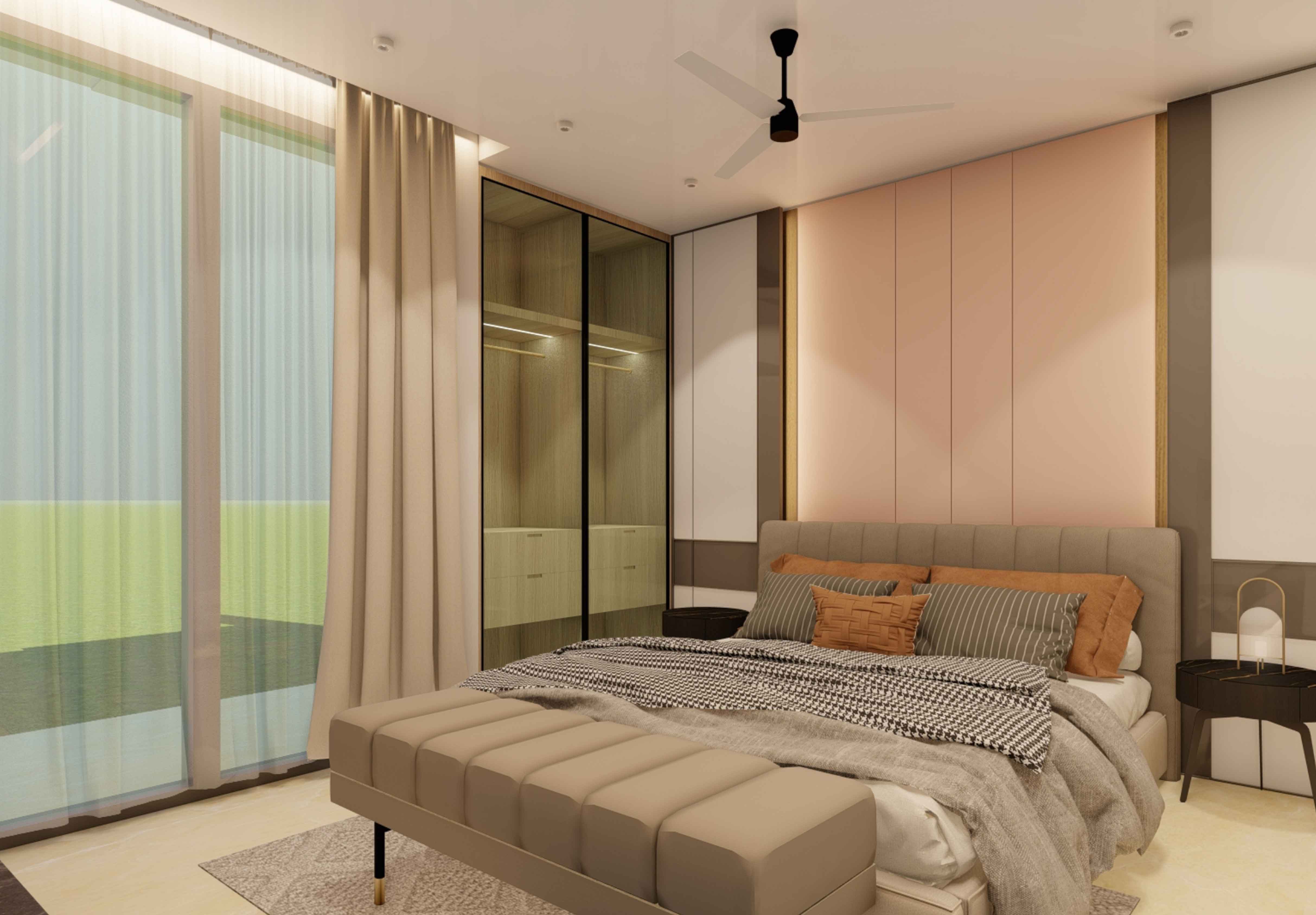 The kitchen was equipped with generous storage, modular fittings, premium woodwork, and layered lighting to enhance both function and style. We used high-end Italian flooring throughout each of the homes. Bedrooms included sleek wardrobes with integrated lighting and metal-framed tinted glass for a refined, contemporary finish.