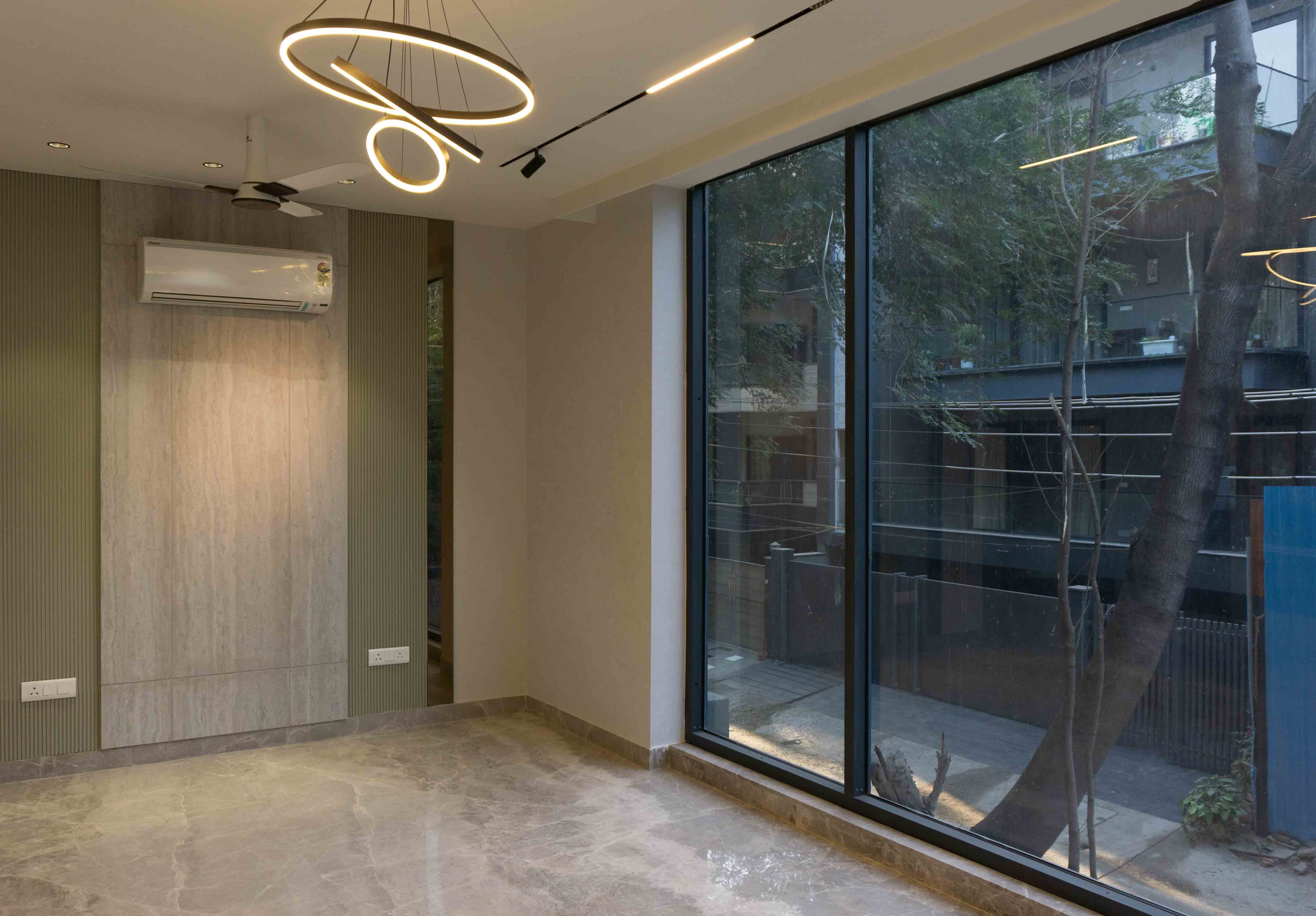 We handled the complete construction, architecture, and interior design of this project on a north-facing 200 sq. yard plot. The ground floor included a lift lobby, four servant rooms, and ample open space to accommodate up to eight vehicles (2 for each floor).