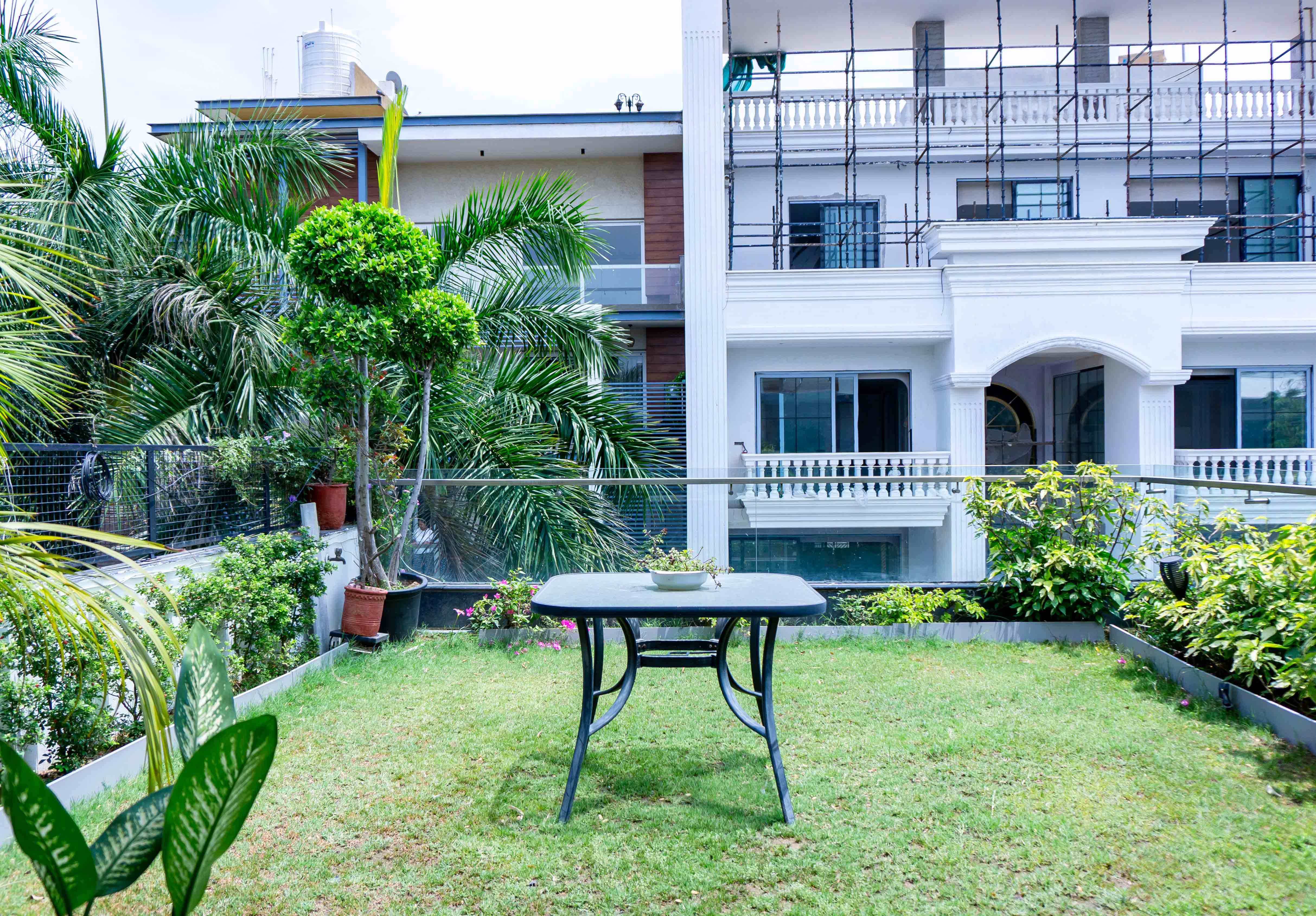 This 1000 sq. ft. bedroom in a villa at DLF Phase 1 is designed for a young couple, with a bold black theme that reflects both comfort and style. It includes an attached bathroom, a walk-in wardrobe, a private den, and a terrace garden—offering a perfect mix of luxury and everyday ease.
