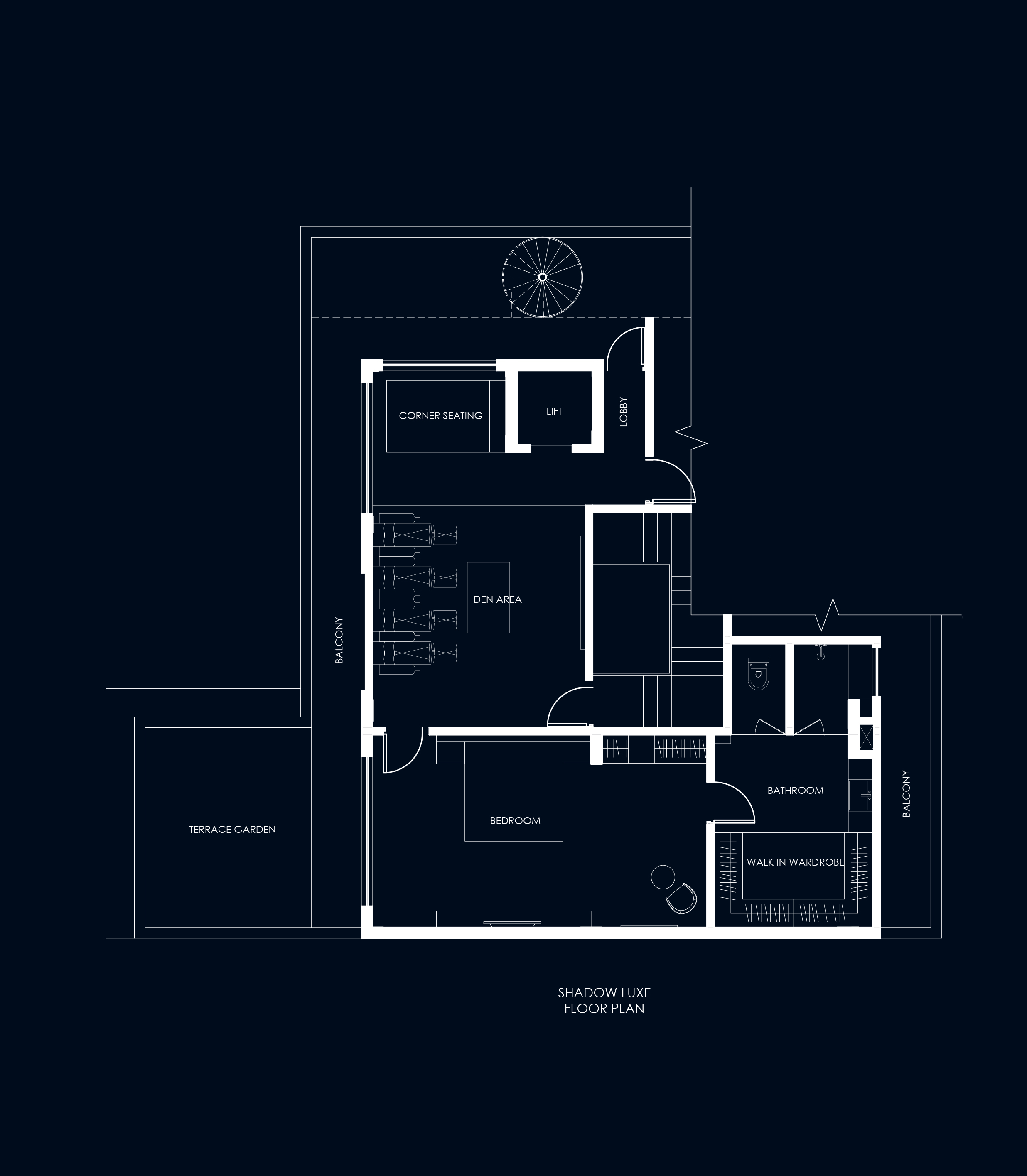 The client wanted a luxurious, black-themed bedroom with Italian marble, sleek accents, and statement lighting. A stylish walk-in wardrobe was essential for seamless functionality, along with a cozy den designed for relaxation, complete with plush seating and a projector setup.
